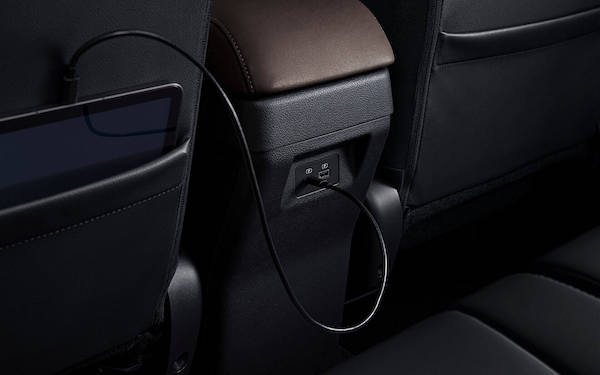 Bệ tỳ tay được trang bị 2 cổng sạc USB ở phía sau cho hàng ghế 2: 01 cổng USB Type-A và 01 cổng USB Type-C
